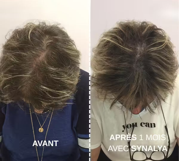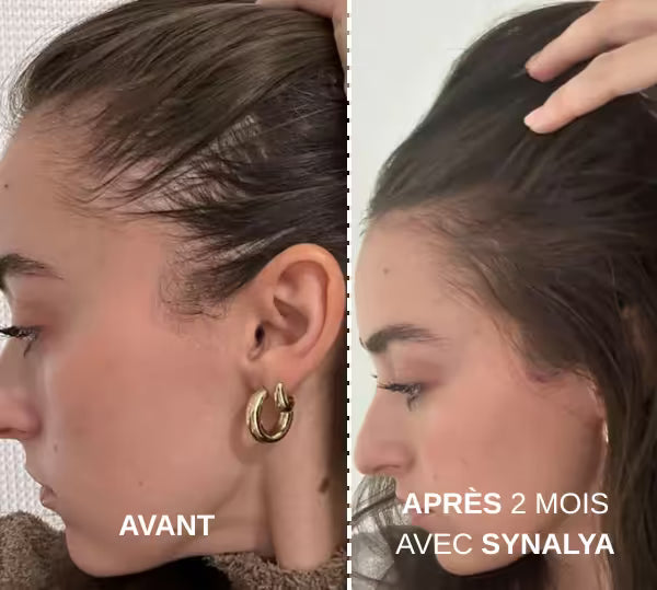 Après la chute post-partum, mes cheveux tombaient par poignées. Avec Synalya, les pertes ont ralenti rapidement, mes tempes repoussent… et surtout, je recommence à aimer ce que je vois dans le miroir.
