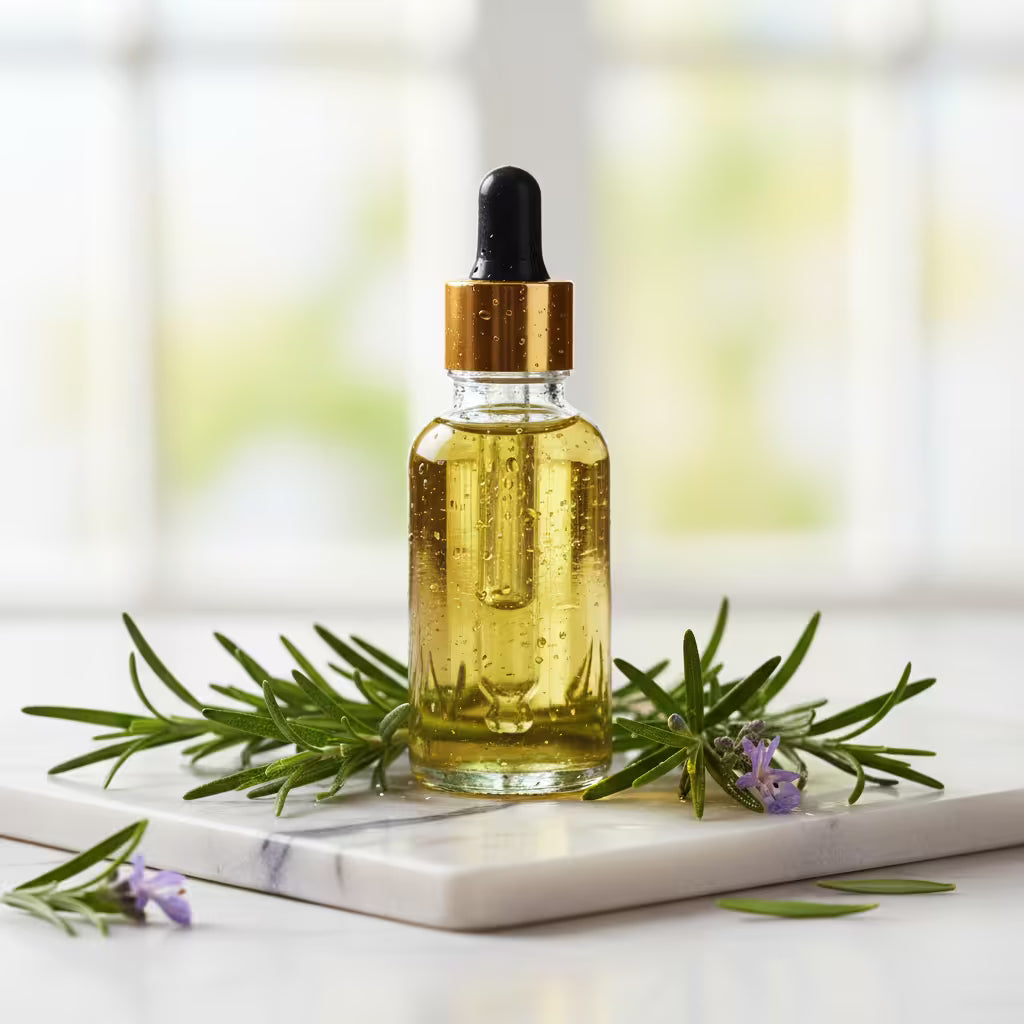 • Extrait de feuille de romarin : Alternative naturelle au minoxidil, il stimule la repousse des cheveux, notamment dans les cas d’alopécie androgénétique.